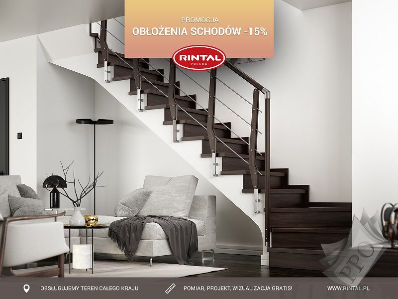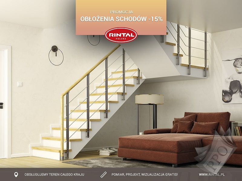 Rintal Polska, wiodący producent SCHODÓW do wnętrz organizuje wyjątkową PROMOCJĘ: OBŁOŻENIA SCHODÓW BETONOWYCH - Rabat 15%! Lato to idealny czas na remont i zmiany charakteru wnętrza swojego domu! Skorzystaj z bezpłatnego pomiaru, projektu oraz otrzymaj wizualizację schodów w swoim wnętrzu gratis! Szczegóły oraz wzbogacona o nowe modele schodów oferta Rintal dostępna jest na stronie www.rintal.pl. Zapoznaj się z rozbudowaną ofertą schodów i poręczy Rintal!Nasi doradcy są do dyspozycji na terenie całego kraju. Umów się na BEZPŁATNY POMIAR! www.rintal.pl e-mail: k.prabucka@rintal.pltel. Dział Handlowy: +48 58 532 42 55