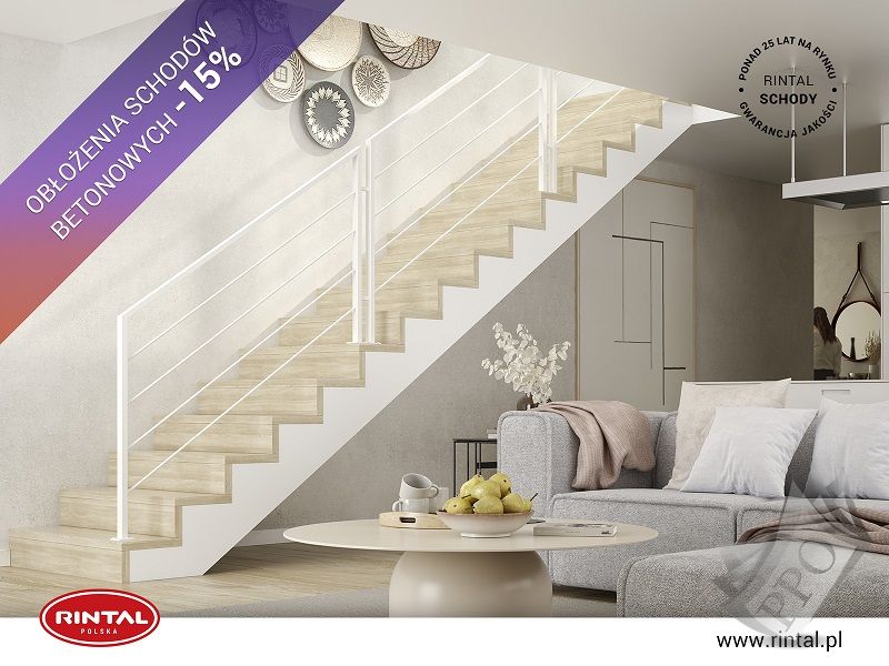 Wiosna coraz bliżej! To też idealny moment na wprowadzenie powiewu świeżości do Twojego domu. A gdyby tak zainwestować w nowe obłożenia schodów betonowych? Rintal Polska, wiodący producent SCHODÓW do wnętrz organizuje PROMOCJĘ: OBŁOŻENIA SCHODÓW BETONOWYCH - Rabat 15%! Skorzystaj z bezpłatnego pomiaru, projektu oraz otrzymaj wizualizację schodów w swoim wnętrzu gratis! Szczegóły oraz wzbogacona o nowe modele schodów oferta Rintal dostępna jest na stronie www.rintal.pl. Zapoznaj się z rozbudowaną ofertą schodów i poręczy Rintal!Nasi doradcy są do dyspozycji na terenie całego kraju. Umów się na BEZPŁATNY POMIAR! www.rintal.ple-mail: k.prabucka@rintal.pltel. Dział Handlowy: +48 585324255