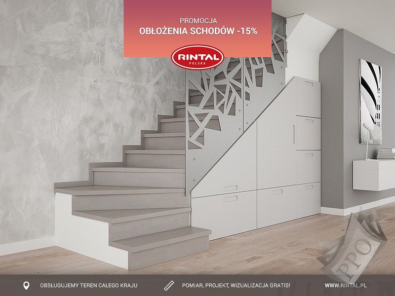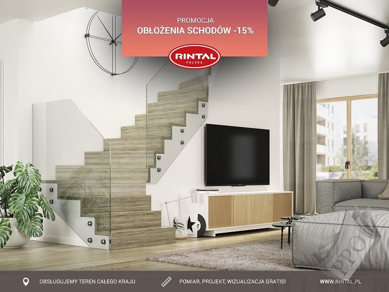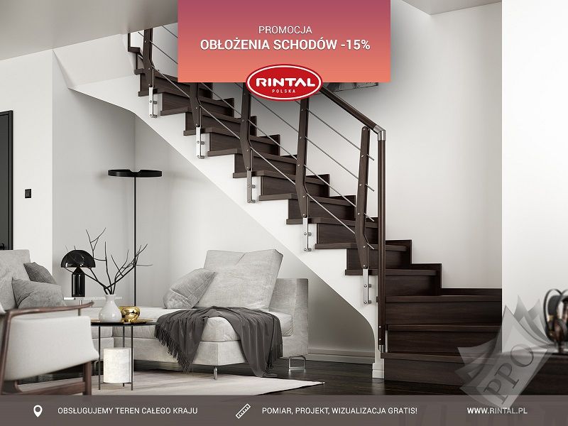 Rintal Polska, wiodący producent SCHODÓW do wnętrz organizuje wyjątkową PROMOCJĘ: OBŁOŻENIA SCHODÓW BETONOWYCH - Rabat 15%! Czas na zmiany i piękne obłożenia schodów, zwłaszcza jesienią, gdy spędzamy dużo więcej czasu w zaciszu domowym! Skorzystaj z bezpłatnego pomiaru, projektu oraz otrzymaj wizualizację schodów w swoim wnętrzu gratis! Szczegóły oraz wzbogacona o nowe modele schodów oferta Rintal dostępna jest na stronie www.rintal.pl. Zapoznaj się z rozbudowaną ofertą schodów i poręczy Rintal!Nasi doradcy są do dyspozycji na terenie całego kraju. Umów się na BEZPŁATNY POMIAR! www.rintal.pl e-mail: k.prabucka@rintal.pltel. Dział Handlowy: +48 58 532 42 55