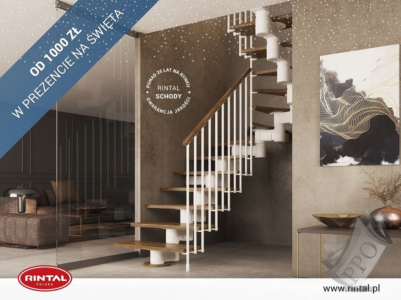 Rintal Polska to od wielu lat wiodący producent schodów do wnętrz. Grudzień to wyjątkowy czas - czas zmian, czas przejścia, czas obdarowywania siebie i innych. Dlatego to właśnie w grudniu firma oferuje swoim Klientom wyjątkowy prezent - zniżkę od 1000 zł na zakup schodów. To niepowtarzalna okazja, aby wyposażyć swoje wnętrze w doskonałej jakości schody z długoletnią tradycją. Przy zakupie modeli w cenie do 25 000 zł Klienci otrzymują rabat 1000 zł, natomiast w przypadku schodów droższych niż 25 000 zł zniżka wynosi aż 2000 zł. Od 01.12 do 31.12.2021 r. możecie Państwo skorzystać oferty przy zakupie schodów wraz poręczami i montażem. Zapraszamy do zapoznania się ze szczegółami promocji, a także ze wzbogaconą o nowe modele schodów ofertą Rintal. Wszystkie informacje dostępne są na stronie internetowej: www.rintal.pl. Doradcy Rintal są do dyspozycji na terenie całego kraju. Pomiar, projekt oraz fotorealistyczna wizualizacja schodów GRATIS! www.rintal.pl e-mail: k.prabucka@rintal.pltel. Dział Handlowy: +48 58 532 42 55