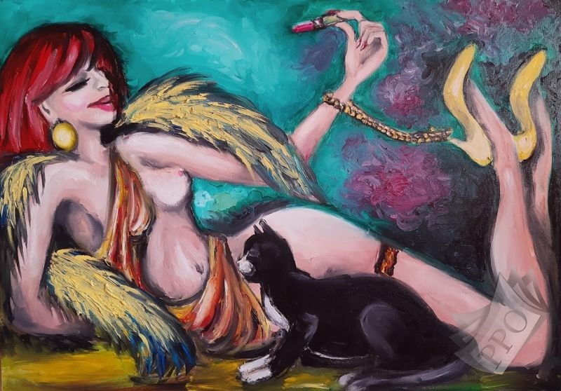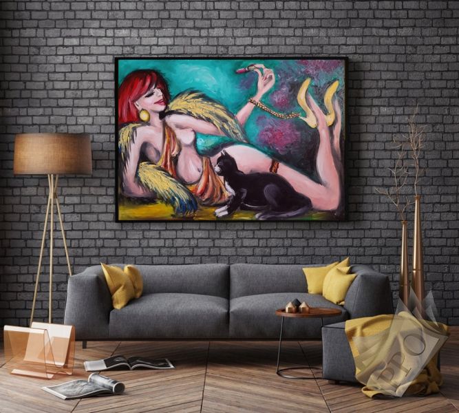 Kobieta z Kotem - obraz olejny na płótnie o wymiarach 100cm x 70cm Namalowany prze zemnie w Sierpniu 2021 Tematyka surrealistyczna Boki obrazu zamalowane. Nie wymaga ram - możemy od razu powiesić na ścianę. Cena obrazu 2200 PLN. Obraz dostępny na mojej stronie internetowej w zakładce Sprzedaż. Milena Olesińska